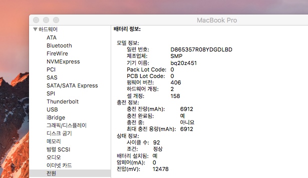 베터리싸이클 : 92 최대충전용량 : 6912